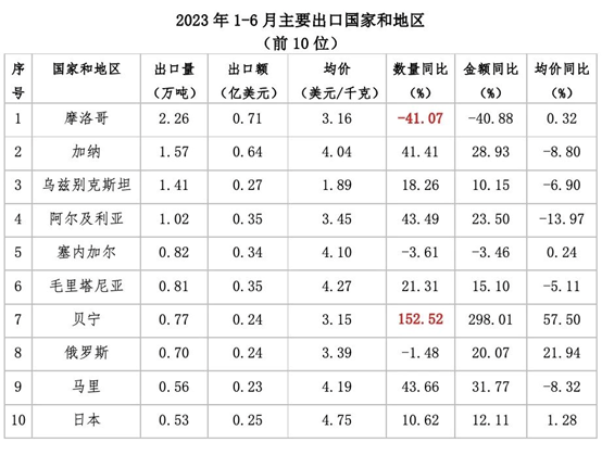 茶葉出口市場(chǎng)位居前10位的分別是摩洛哥、加納、烏茲別克斯坦、阿爾及利亞、塞內(nèi)加爾、毛里塔尼亞、貝寧、俄羅斯、馬里和日本。對(duì)摩洛哥出口2.26萬(wàn)噸,降幅最大達(dá)41.07%;對(duì)貝寧出口7680噸,增幅最大達(dá)152.52%。